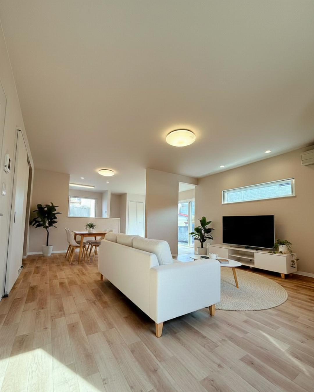 タタミコーナーが嬉しい広々25帖のリビングのおうち。パントリーやファミリークローゼット、シューズクロークやランドリーとときめきポイントを散りばめました!