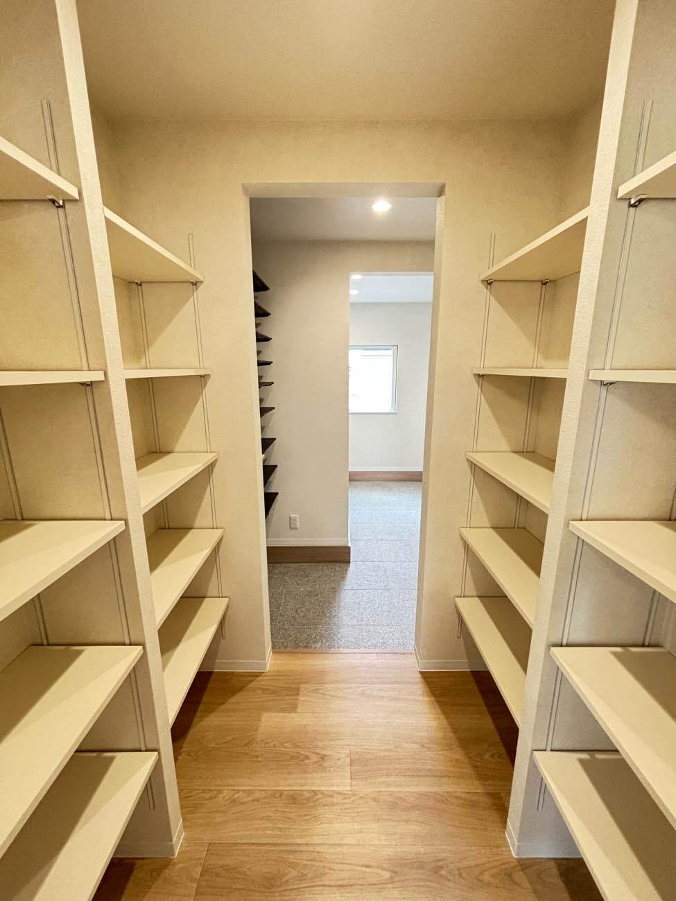 シューズクロークからパントリー・キッチンへとウォークスル~でき、
